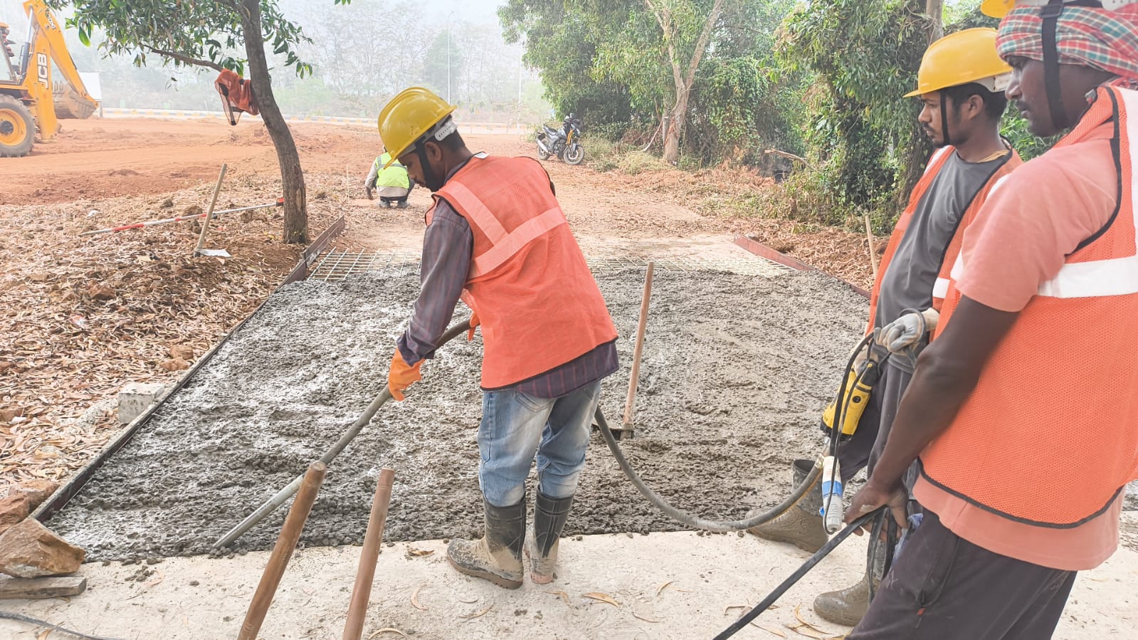 RCC road concrete pouring in progress.
